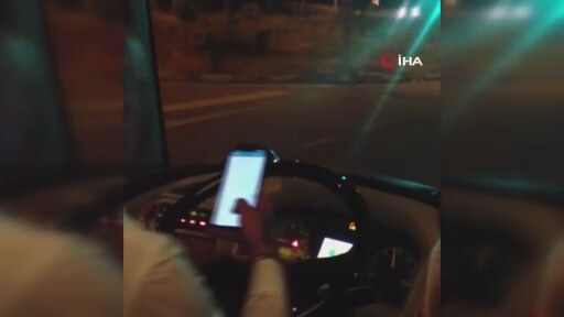 Cep telefonu ile mesajlaşırken direksiyonu kollarıyla yönlendiren otobüs şoförünün trafik güvenliğini ve araç içindeki yolcuların hayatını tehlikeye attığı o anlar yolcular tarafından cep telefonu kamerası ile görüntülendi.