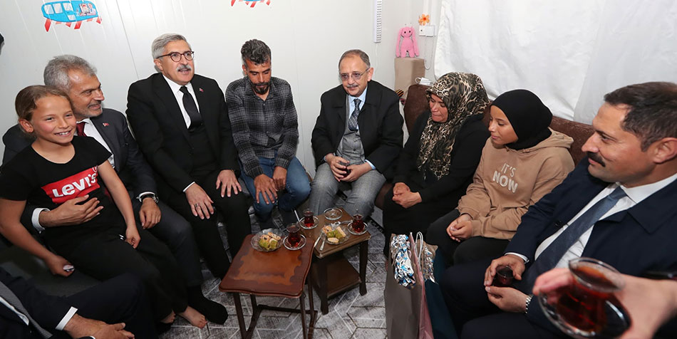 Aile fertleriyle sohbet edip, çay içen Bakan Özhaseki, kendisiyle tanışmak isteyen Sude Naz ve Elif’in de bayramlarını kutladı.