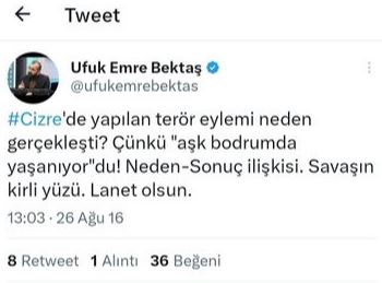 CHP içerisindeki terör destekçisi isimler birer birer gün yüzüne çıkıyor. CHP Bahçelievler Belediye Meclis Üyesi Ufuk Emre Bektaş'ın terör örgütü PKK'yı savunup, devleti ve Türk Silahlı Kuvvetlerini (TSK) suçladığı tweetler ortaya çıktı.