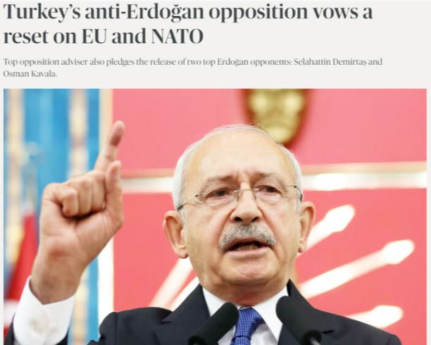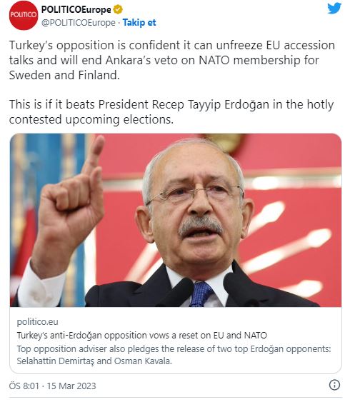 Haberde, muhalefetin, AB ile üyelik müzakerelerini çözmenin yanı sıra Ankara'nın İsveç ve Finlandiya'nın NATO üyeliği üzerindeki vetosunu kaldırma konularında kararlı olduğu kaydedildi.