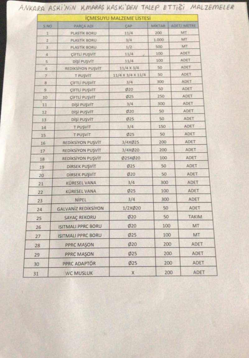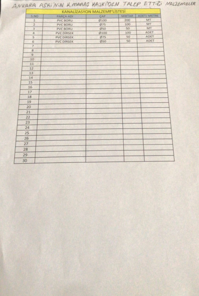 Kahramanmaraş Belediyesi'nden malzeme talep eden Ankara Büyükşehir Belediyesi ayrıca malzemeler temin edilmezse çalışmaların yapılamayacağını belirtmiş. Sosyal medya hesabından talep edilen malzeme listesini paylaşan Ağrı Belediye Başkanı Savcı Sayan, "Yazıklar olsun" ifadesini kullandı.