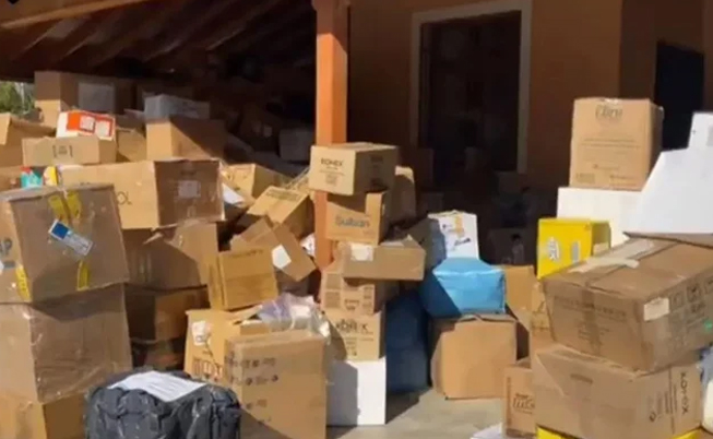 Baskında evde ve henüz indirilmekte olan tır üzerindeki malzemelere el konuldu.