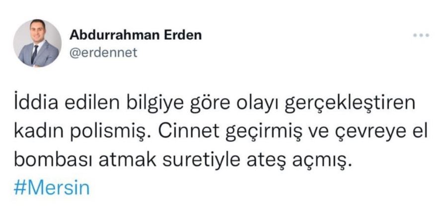CHP'li Erden Mersin'de gerçekleştirilen terör saldırısı hakkında "Olayı gerçekleştirilen kadın polismiş" paylaşımında bulundu.