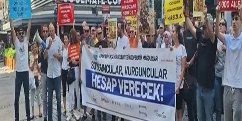 İzmir Kooperatif Mağdurları Birliği üyeleri Alsancak Kıbrıs Şehitleri Caddesi'nde bir araya gelerek basın açıklaması yaptı. 'Kandırıldık' diyen mağdurlar yaptıkları açıklamada, '2021'de İzmir Büyükşehir Belediyesi'nin öncülüğünde ve dönemin Belediye Başkanı Tunç Soyer'in siyasi vizyonunun yansıması olarak kamuoyuna sunulan konut yapı kooperatifleri, başlangıçta bir kentsel umut olarak görülmüştü.