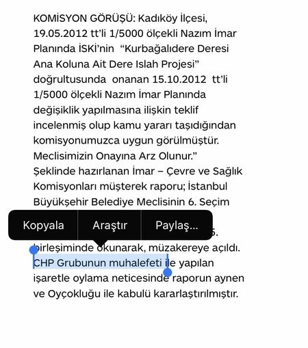 AK Partili İBB, 12 Nisan 2013'te İSKİ'nin Kadıköy ilçesinde bulunan Kurbağalıdere Deresi Ana Koluna Ait Dere Islah Projesi'ni İBB Meclisi'ne sunduğunda CHP'li meclis üyeleri topluca ret oyu vermişti.
