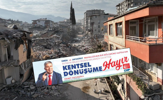 Türkiye’yi yasa boğan depremlerde en ağır yarayı Hatay aldı. Şehirde yıkılan ve ağır hasarlı bina sayısı 60 bine dayandı. Tablonun ağırlaşmasının sebeplerinden birisi de CHP ile Türk Mühendis ve Mimar Odaları Birliği’nin (TMMOB) kentsel dönüşüm projelerine gösterdiği direnç oldu. Dönüşümün engellendiği yerlerden sadece 2’si olan Emek ve Aksaray mahallelerinde 330 bina yerle bir oldu, 1397 bina da ağır hasarlı. Yani toplam 1727 binanın kullanılamaz hale geldiği iki mahalledeki ölü sayısı ise yüzlerle ifade ediliyor.