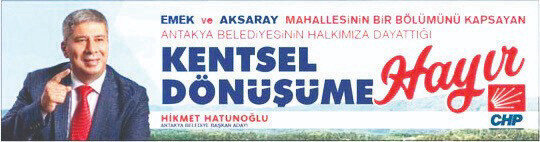 Hatay’ın merkezindeki mahalle 2013 yılında kentsel dönüşüm kapsamına alınmış. 2016’da imar planları onaylanmış. Antakya Belediyesi halkı kentsel dönüşüme ikna etmek, CHP ise projeyi engellemek için büyük çaba göstermiş. CHP teşkilatları kapı kapı dolaşıp vatandaşlara “kentsel dönüşüme karşı çıkılması gerektiğini” anlatmış. Kentsel dönüşüm için şehre gelen bakanlar yuhalatılmış. CHP’li adaylar seçim dönemlerinde “kentsel dönüşümü durdurma” vaadi ile oy toplamış.