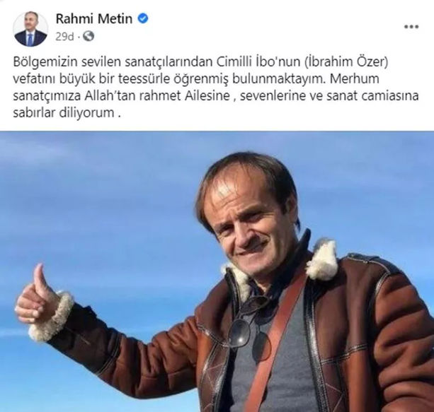 Rize Belediye Başkanı Rahmi Metin de sosyal medya hesabından, "Bölgemizin sevilen sanatçılarından Cimilli İbo'nun (İbrahim Özer) vefatını büyük bir teessürle öğrenmiş bulunmaktayım. Merhum sanatçımıza Allah’tan rahmet Ailesine , sevenlerine ve sanat camiasına sabırlar diliyorum." mesajını paylaştı.