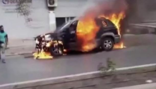İddiaya göre, polis ekipleri hacizli olan bir aracı durdurarak bağlamak istedi. Araç sürücü ise "Ben bu devlete vergi ödüyorum, arabamı bağlayamazsınız" diyerek polis ekiplerine direndi ve ardından otomobilini ateşe verdi.