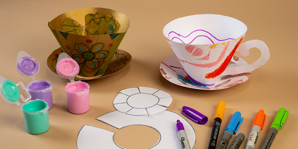 7-12 yaş grubuna yönelik Çini Motifli Kocaman Fincanlar atölyesi, çocukları çini sanatının estetik dünyasıyla buluşturuyor. Kahve Molası sergisinden esinlenen çocuklar, karton kullanarak büyük ölçekli kahve fincanları yapıyor. Kütahya çinilerinin karakteristik desenlerinden ilham alarak doğal boyalarla fincanlarını süsleyen katılımcılar, el becerilerini geliştirirken geleneksel sanatlarla çağdaş bir bağ kuruyor.