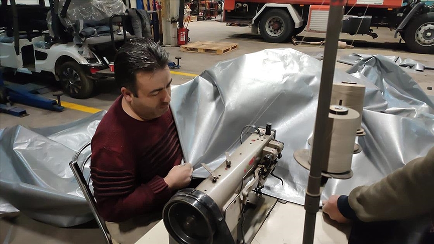 Aşgın, kentteki mobilya ve marangoz esnafından da çadırların altına konulması için bir kamyon palet tedarik edildiğini aktararak, "Dün öğlen başladığımız çalışma ile şu ana kadar 30 çadır iskeleti ürettik ancak dikim konusunda sorun yaşıyoruz. Arkadaşlarımız sabaha kadar çalıştı ve 21 çadırın kumaş işlemini tamamladık. Soba ile birlikte kullanmaya uygun 21 çadırı kuruluma hazır hale getirdik ve kamyona yükledik. Çadırların altına serilmesi için bir kamyon palet ve halıfleksi, 10 kişilik kurulum ekibiyle afet bölgesine gönderdik. Üç aracımız sabah saatlerinde yola çıktı." diye konuştu.