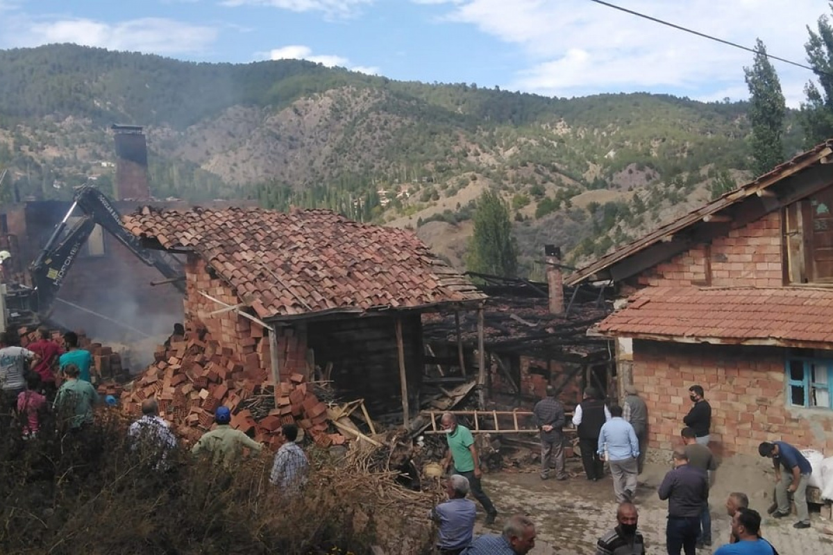 Rüzgarında etkisiyle büyüyen yangında Mehmet ve Dursun Düvenci'ye ait 2 ev ile 1 samanlık yandı. Yangın sırasında bir evde yaşanan tüp patlaması büyük paniğe neden oldu. Yangınla ilgili başlatılan soruşturma sürüyor.
