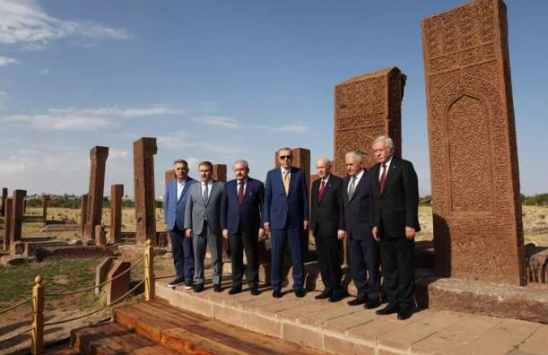 TBMM Başkanı Mustafa Şentop, MHP Genel Başkanı Devlet Bahçeli, bakanlar ve kuvvet komutanlarının eşlik ettiği Cumhurbaşkanı Erdoğan, mezarlık ziyareti yapıp hem dua etti hem de alandaki çalışmaların son durumuyla ilgili bilgi aldı.