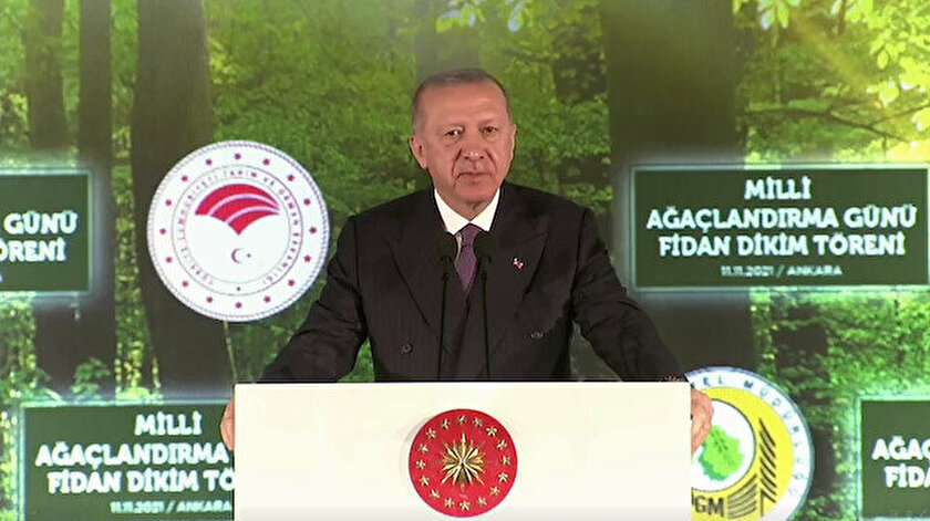 Cumhurbaşkanı Recep Tayyip Erdoğan, 11 Kasım Milli Ağaçlandırma Günü dolayısıyla düzenlenen fidan dikim töreninde konuştu. Erdoğan'ın açıklamalarından öne çıkanlar şöyle:
