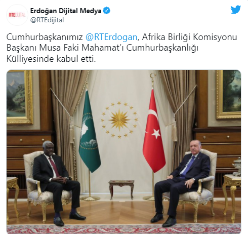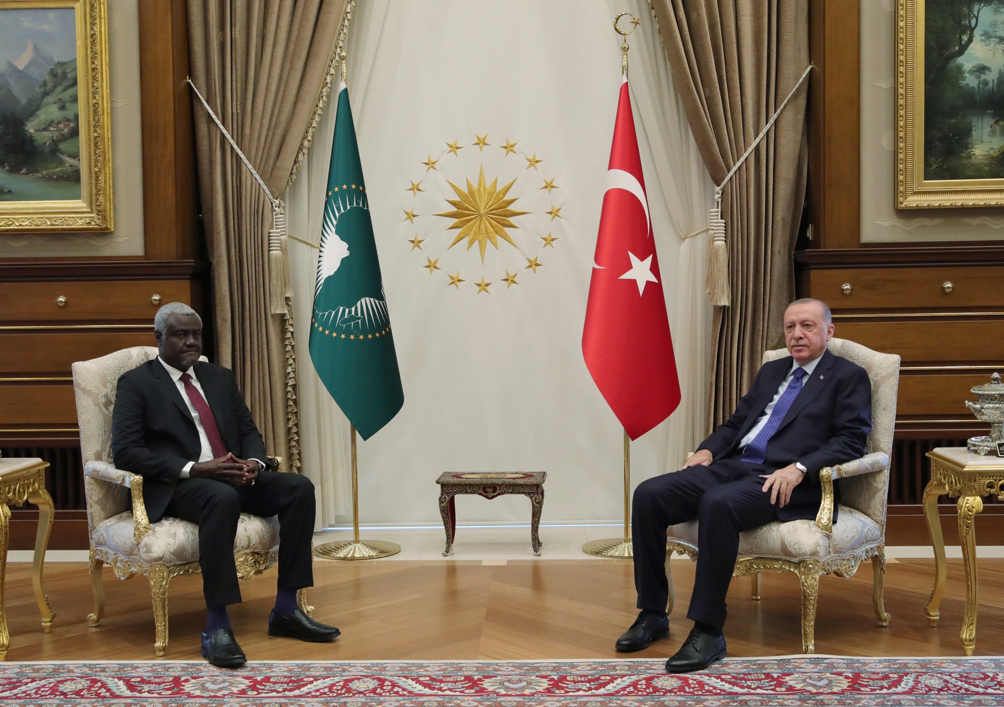 Cumhurbaşkanı Recep Tayyip Erdoğan, Cumhurbaşkanlığı Külliyesi’nde Afrika Birliği Komisyonu Başkanı Moussa Faki Mahamat’ı ağırladı.
