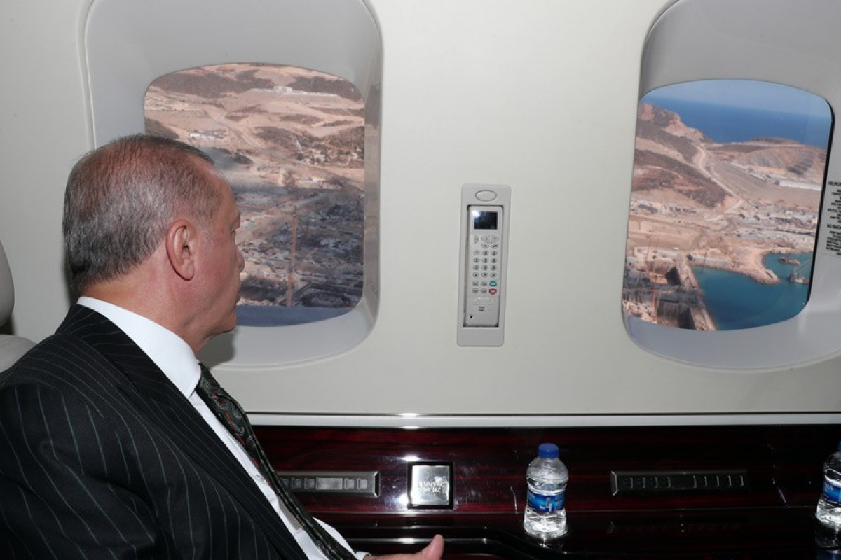 Cumhurbaşkanı Erdoğan'a buradaki incelemeleri sırasında bazı bakanlar ile Rus yetkililer de eşlik etti.