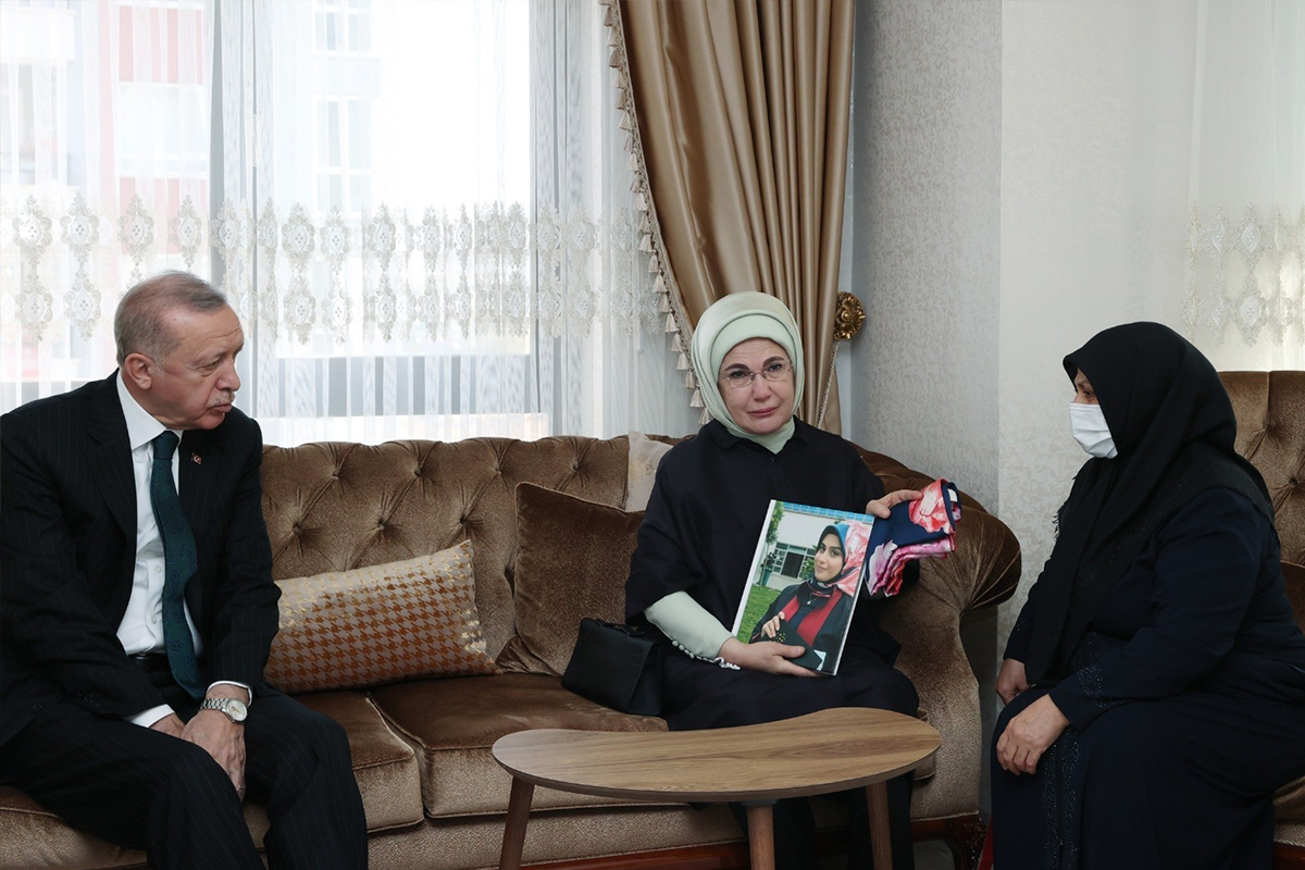 Cumhurbaşkanı Recep Tayyip Erdoğan, samuray kılıcıyla öldürülen mimar Başak Cengiz'in Ankara'daki evini ziyaret ediyor.