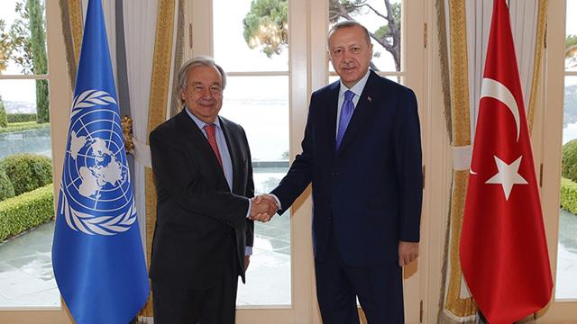 Görüşmede, BM Genel Sekreteri Guterres'in Moskova'da Rusya Devlet Başkanı Vladimir Putin ile gerçekleştirdiği temaslara ilişkin Cumhurbaşkanı Erdoğan’a bilgi verdiği aktarıldı.
