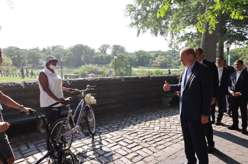 Birleşmiş Milletler (BM) 77. Genel Kuruluna katılmak ve çeşitli temaslarda bulunmak üzere ABD'nin New York şehrine giden Cumhurbaşkanı Recep Tayyip Erdoğan, New York'un Manhattan bölgesinde yer alan Central Park'ta yürüyüş yaptı.