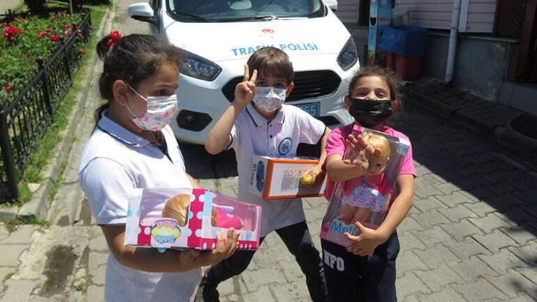 Cumhurbaşkanı Erdoğan, yolda gördüğü çocuklara oyuncak verdi. Oyuncak alan çocuklar çok mutlu olduklarını belirterek Erdoğan'a teşekkür etti.