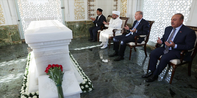 Erdoğan, havalimanındaki karşılamanın ardından Özbekistan Birinci Cumhurbaşkanı İslam Kerimov'un da kabrinin bulunduğu Hazreti Hızır Türbesi'ne ziyarette bulundu.