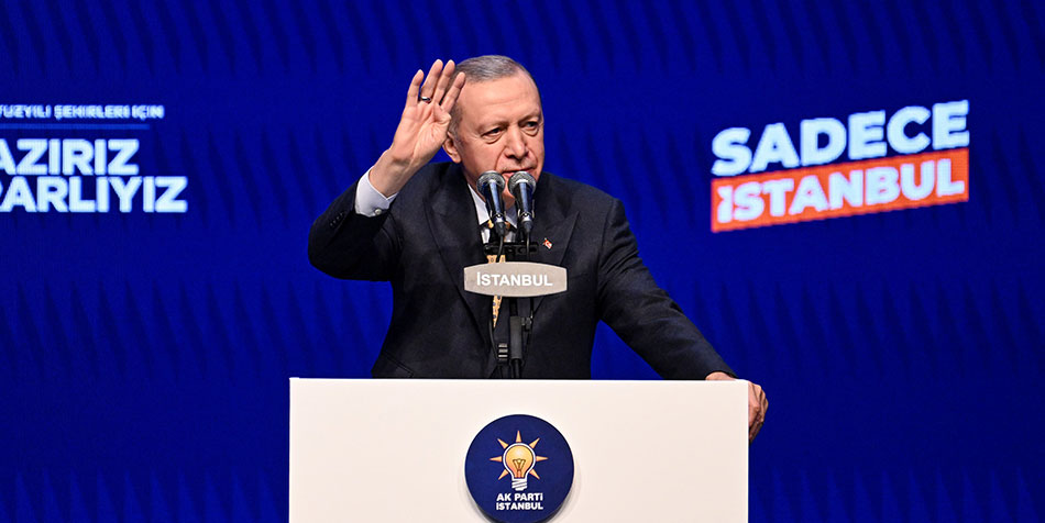 Erdoğan, "Bunlar temel atmama merasimi yapıyorlar. Böyle bir şey olur mu? Suyu akmayan, ulaşımı dökülen, sokaklarını pislik götüren, trafikte insanların ömrünü tükettiği, her tarafı tel tel dökülen bu İstanbul fotoğrafı bize üzmekle kalmadı, üstlendiğimiz sorumluluğu hatırlattı. Bu görüntüyü bitirmek için imkanları seferber ettik. Bahanelerin arkasında saklanmak yerine İstanbullunun derdine derman olmaya odaklandık. Hamd olsun kısa sürede temel sorunların hemen hepsini hal yoluna koyduk. Maalesef son 5 yılda İstanbul yeniden o ihmallere maruz kaldı. 5 yıl gibi çok kısa sürede neredeyse çeyrek asırlık irtifa kaydı yaşadı. İstanbul'un yönetimini devralanlar tuğla üstüne tuğla koyarak değil, temel atmama töreniyle başladılar. Arıtma yapılmayan sular Haliç'e boca edilince burası yeniden kokmaya başladı. 94'ten beri yürüttüğümüz beri yaptığımız çalışmaların parçasıydı Haliç. Dikey bahçeleri yok ederek bunu devam ettirdiler.
