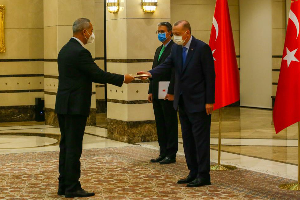 Cumhurbaşkanlığı Külliyesi'nde gerçekleşen törende Büyükelçi Mustafa Elgelaib, Cumhurbaşkanı Erdoğan'a güven mektubu sundu. Büyükelçi Elgelaib'in beraberindeki bazı elçilik mensuplarını takdimi ve fotoğraf çekiminin ardından tören sona erdi.