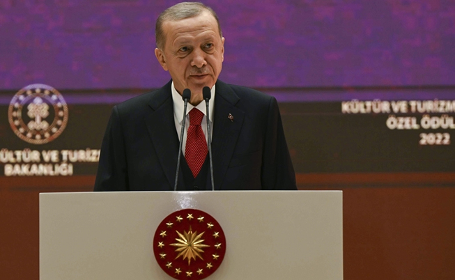 Kültür ve Turizm Bakanlığı 2022 Özel Ödüllerinin takdim edilen 3 kuruma, ülke ve millet adına şükranlarını sunan Cumhurbaşkanı Erdoğan, Kültür ve Turizm Bakanı Mehmet Nuri Ersoy ile jüri üyelerine Anadolu'nun farklı köşelerinde filizlenen kültür varlıklarına sahip çıktıkları için ayrıca teşekkür etti.