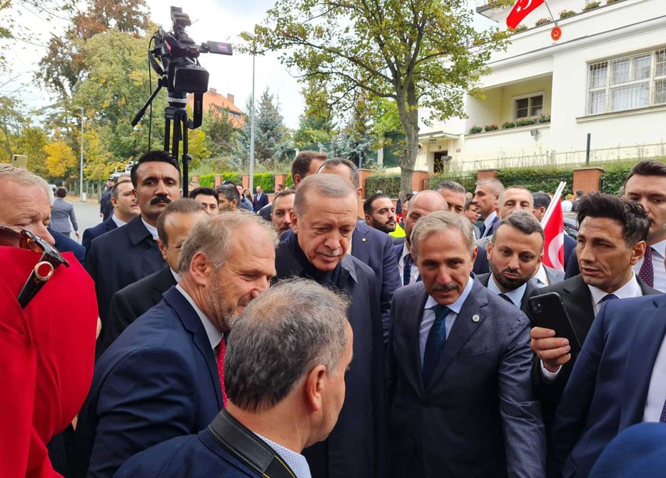 Cumhurbaşkanı Erdoğan daha sonra Türkiye'nin Prag Büyükelçiliğini ziyaret etti.