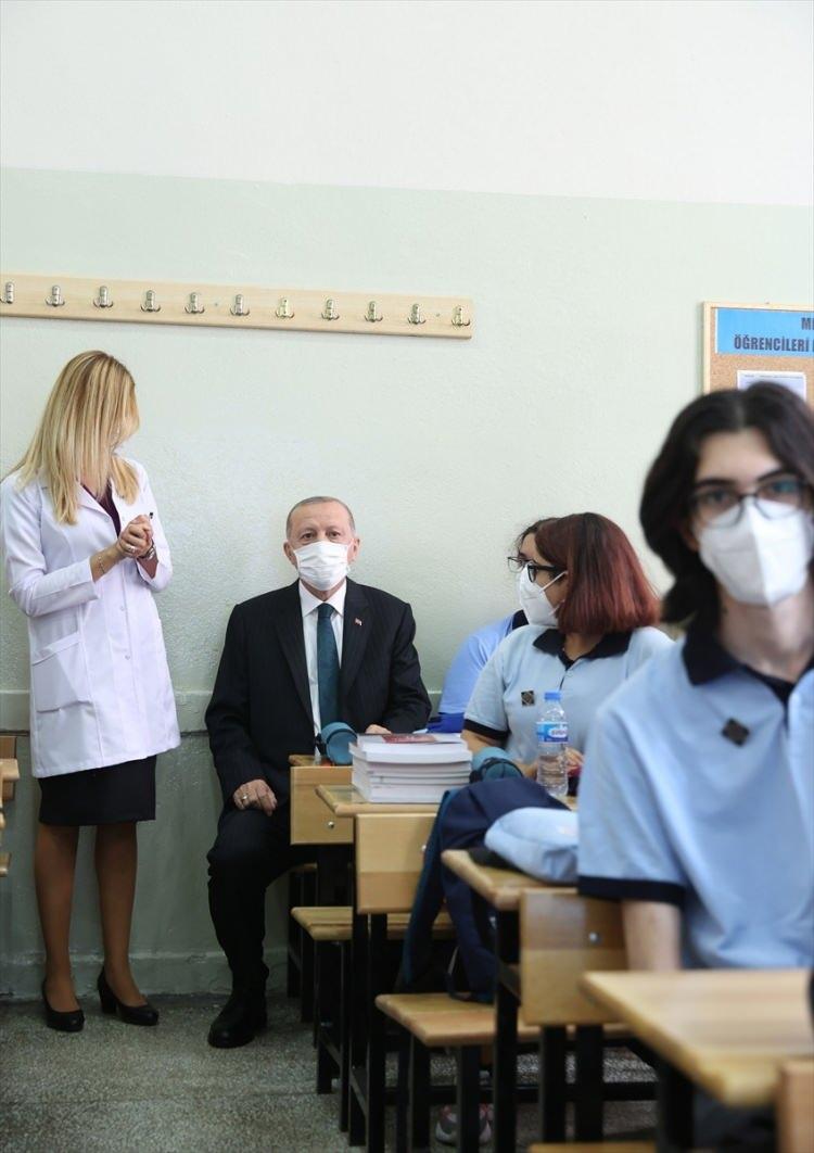 Cumhurbaşkanı Erdoğan daha sonra bir sınıfı ziyaret etti.