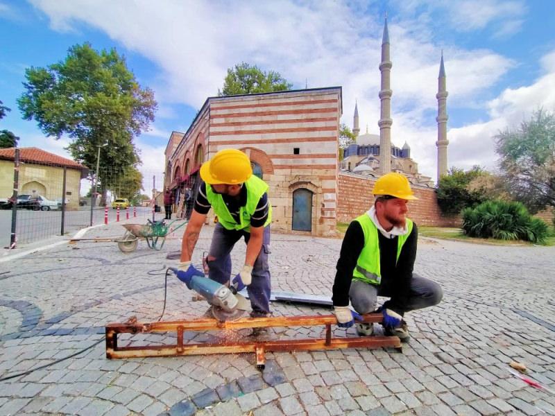 Selimiye Camii'nin önünde bulunan meydanı iş güvenliği açısından bariyerlerle vatandaşın geçişine kapatan firma, çalışmalarını hızlandırdı. Projesi kapsamında, caminin çevresinde görüntüsünü bozan alanlar kaldırılacak. Projenin, 6 ayda tamamlanması planlanıyor.