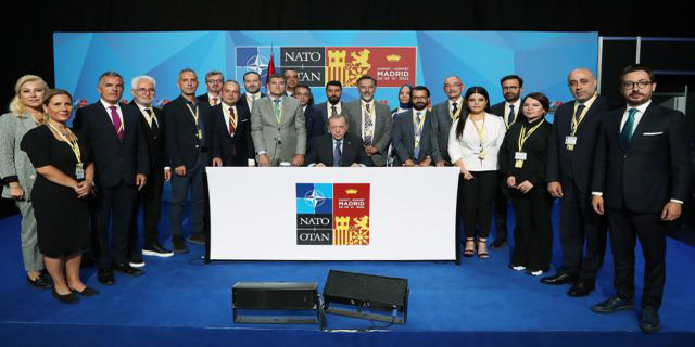 "Biz, bu noktada en başından beri ortaya koyduğumuz ilkeli ve dirayetli tutumu, Madrid’de de sürdürdük. Bu ülkelerin bilhassa terörle mücadele alanında meşru taleplerimize yönelik bağlayıcı taahhütlerde bulunmaları, somut ve net adımlar atmaları gerektiğini kendilerine ifade ettik. Genel Sekreterin kolaylaştırıcılığında gerçekleştirdiğimiz dörtlü zirve akabinde imzalanan muhtırayla tüm bu hususları kayıt altına aldık. Ülkemizin bu muhtırayla elde ettiği kazanımlar yanında Türkiye özellikle terörle mücadele alanında pek çok ilke imza atmıştır. Kuzey Atlantik Konseyinde ilk kez talebimizle 'Terörizm ve Güney' konulu özel oturum düzenlendi. Terörizmin bütün tür ve tezahürleriyle temel iki tehditten biri olduğu, İttifak'ın en üst rehber belgesine girdi. Sınırlarımız ve ulusal güvenliğimiz temelinde 360 derece yaklaşıma her belgede atıf yaptırdık. Stratejik Konsept'te ilk kez, terör örgütlerinin 'halklarımızın ve topraklarımızın' yanı sıra 'güvenlik kuvvetlerimizi' tehdit ettiğini kayıt altına aldırdık.