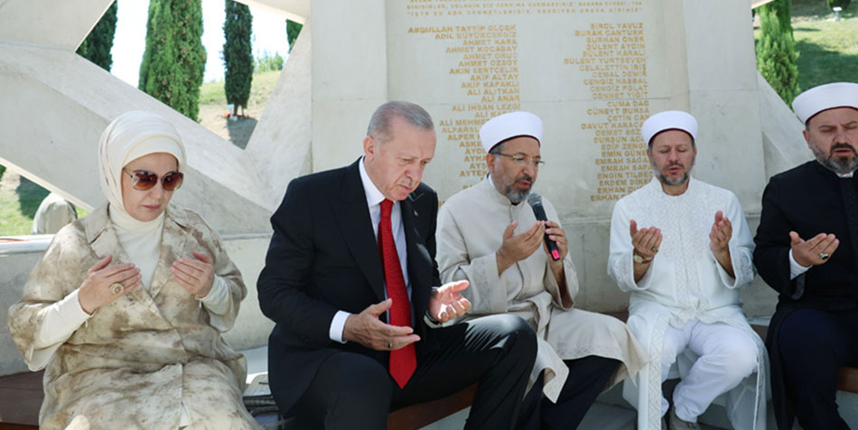 15 Temmuz Şehitler Anıtı'na çiçek bırakan Cumhurbaşkanı Erdoğan da daha sonra şehitler için Kuran-ı Kerim'den ayetleri okudu. Ziyaretler sırasında duygusal anlar yaşandı.