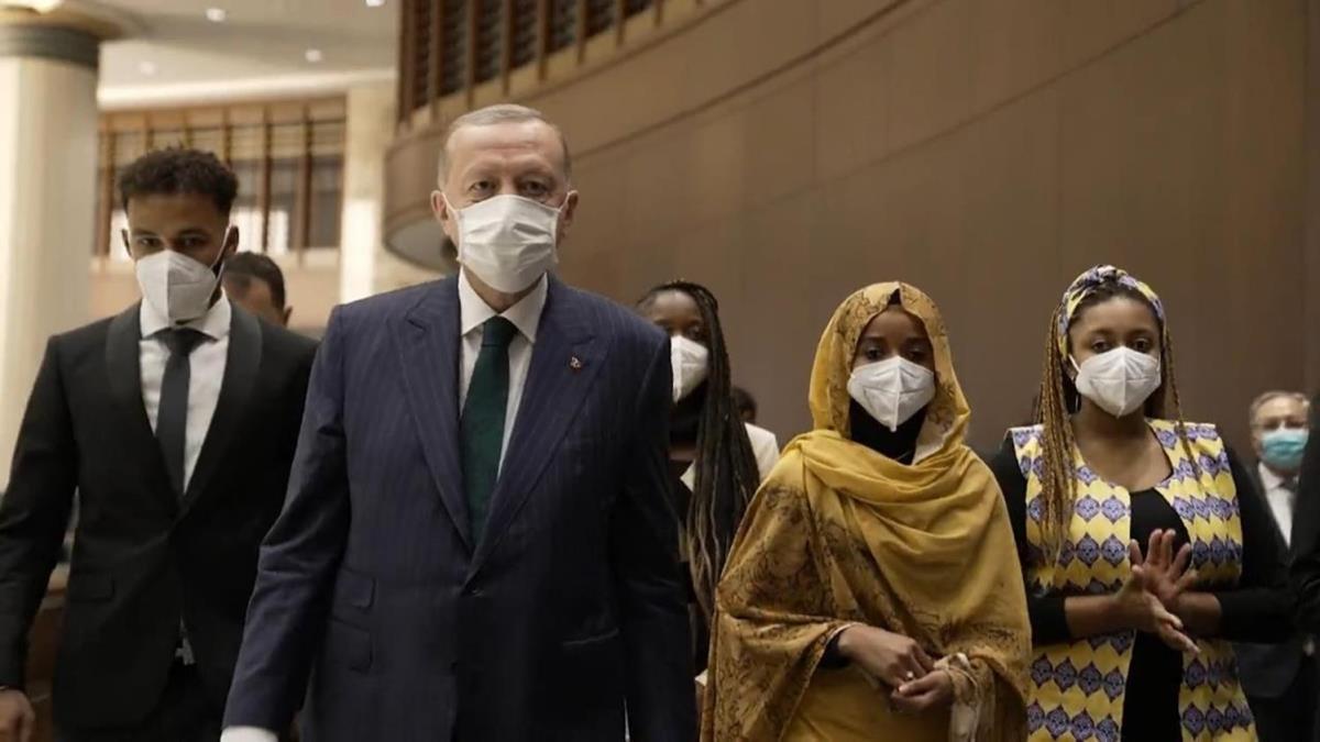 Cumhurbaşkanı Recep Tayyip Erdoğan, 3. Türkiye-Afrika Zirvesi kapsamında Türkiye’de eğitim gören Afrikalı gençlerle buluştu. Buluşmada gençlere hitap eden Erdoğan, “Afrika kıtası ile kökü 10’uncu yüzyıla uzanan derin ilişkilerimiz bulunuyor. Afrikalı kardeşlerimiz milletimizin gönlünde müstesna bir yere sahiptir. Biz de göreve geldiğimiz 2002 yılından itibaren Afrika ile dostluğumuzun ve işbirliğimizin gelişmesine özel önem verdik. Başbakanlık görevim dahil bugüne kadar 30 Afrika ülkesini toplamda 50 defa ziyaret ettim. Çoğu ilk kez olmak üzere kıta genelinde pek çok devlet ve hükümet başkanını da ülkemizde ağırladık. Sadece bu yıl Kovid-19 salgınına rağmen Sahra Altı Afrika’dan 38 üst düzey heyeti Türkiye’de misafir ettik. Aramızdaki mesafeye rağmen Afrika ülkelerini yakın birer komşumuz olarak addediyoruz. Afrika’nın meselelerine ilişkin olarak kıtadaki ortaklarımızla aynı vizyonu, aynı hassasiyeti paylaşıyoruz.