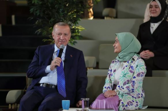 Cumhurbaşkanı Erdoğan, Mersin'de 18 yaşında parlamentoya aday olduğunu belirten bir kız öğrencinin Türk Devletleri Teşkilatı'nın gençlik yapılanmasına ilişkin bir çalışmanın olup olmayacağına ve kamu diplomasisinde Türk gençlerinin rolüne ilişkin sorusu üzerine, 30 olan seçilme yaşını önce 25'e sonra da 18'e indirdiklerini anlattı.
