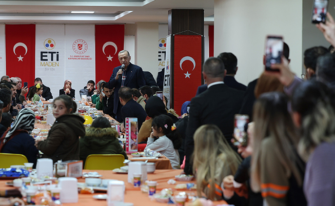 Cumhurbaşkanı Erdoğan, Bandırma'da Bor Karbür Üretim Tesisi'nin açılışının ardından, Eti Maden Genel Müdürlüğünün Balıkesir'deki sosyal tesislerinde, kente getirilen depremzedelerle bir araya geldi.