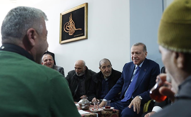 Erdoğan, törenin ardından cami çevresinde kendisine sevgi gösterisinde bulunan vatandaşlarla çay içerek sohbet etti.