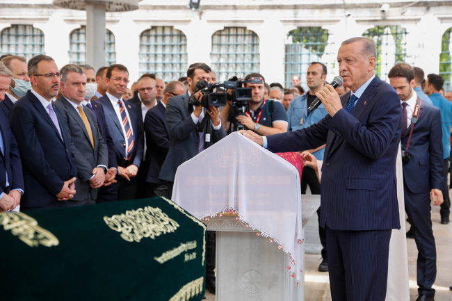 Cumhurbaşkanı Erdoğan, "Değerli kardeşlerim şuanda musallada bulunan bay ve bayan kardeşlerimizi şimdi hakka uğurluyoruz. Rabbim taksiratlarını affetsin mekanlarını cennet eylesin. Geride bıraktığı ailelere de sabır eğlesin. Her nefis ölümü tadacaktır. Allah'tan geldik Allah'a gideceğiz. İşte umulmadık bir anda Fethiye ablamızı kaybettik bugün de uğurluyoruz.