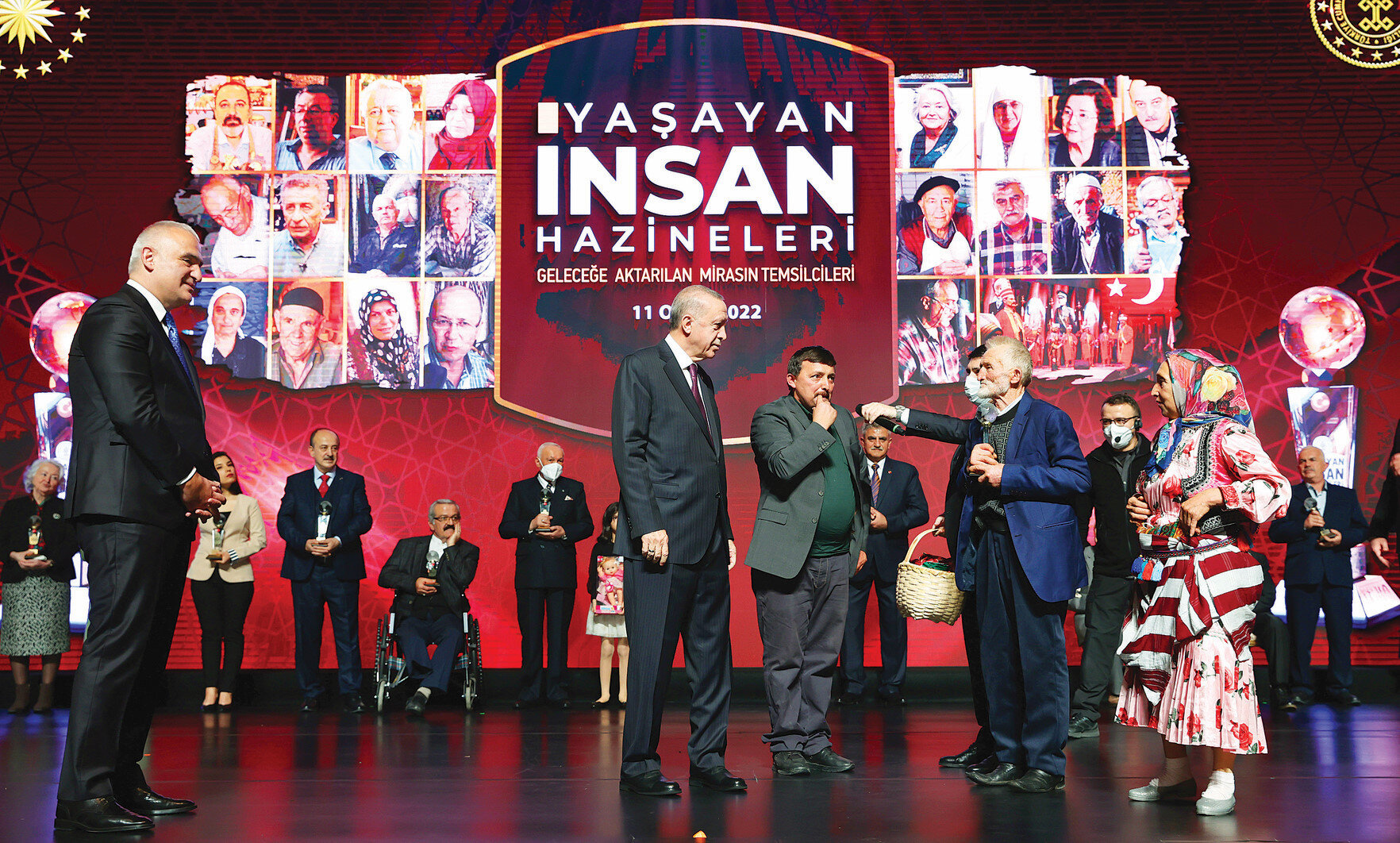 Türkiye’nin UNESCO’nun 2003 yılında kabul ettiği Somut Olmayan Kültürel Miras Sözleşmesi’ne 2006 yılında taraf olduğunu hatırlatan Erdoğan, 2021 ödülleri vesilesiyle bir arada oldukları “Yaşayan İnsan Hazineleri”nin de aynı sözleşme kapsamındaki envanter faaliyetlerinden birisi olduğunu vurguladı. Erdoğan daha sonra ödüle hak kazanan isimleri açıkladı: