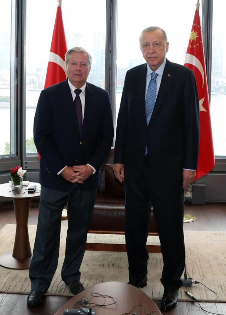 Cumhurbaşkanı Erdoğan, New York’taki Türkevi’nde ABD’li Senatör Lindsey Graham ve Yemen Cumhurbaşkanlığı Liderlik Konsey Başkanı Rasad Muhammed El Alimi ile görüştü.