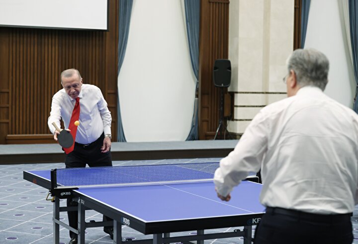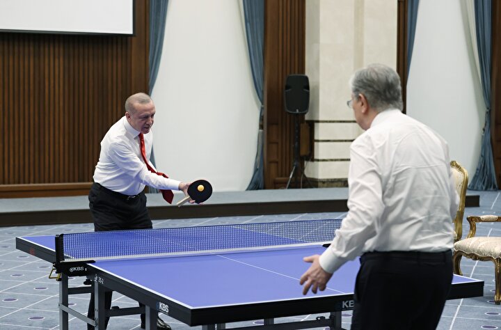 Ardından iki lider Cumhurbaşkanlığı Külliyesi'ndeki basın toplantısı ardından Masa Tenisi oynamıştı.