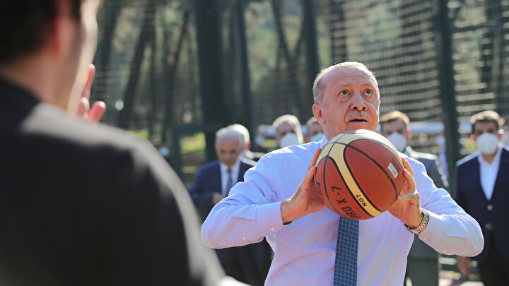 Erdoğan geçen yıl da açılış için gittiği Ümraniye Millet Bahçesi'nde gençlerle basketbol oynamıştı.