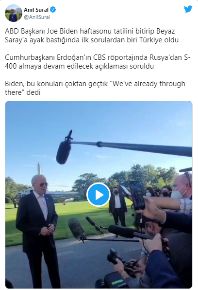 Beyaz Saray'ın bahçesindeki kalabalık gazeteci grubuyla karşılaşan Biden, S-400 meselesi için, "We've already through there (Bu konuları çoktan geçtik)" dedi.