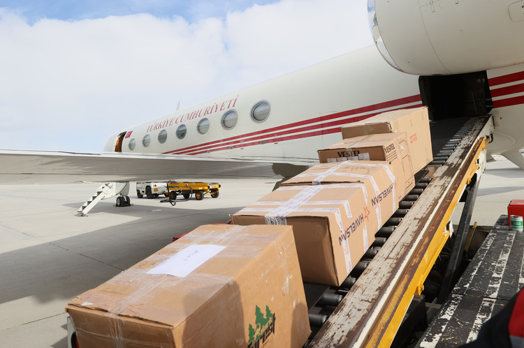Cumhurbaşkanlığına ait 2 uçak, merkez üssü Kahramanmaraş'ın Pazarcık ve Elbistan ilçeleri olan, 10 ili etkileyen 7,7 ve 7,6 büyüklüğündeki depremlerde görev yapacak sağlık ve arama kurtarma ekiplerine tahsis edildi.