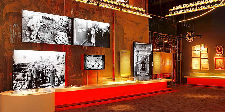 Ziyarete açıldığı günden itibaren büyük ilgi gören 700’e yakın orijinal ve dijital eser, belge ve efemeranın yer aldığı sergide, dönemin plastik sanatlar, müzik, edebiyat, grafik ve mimari tasarım, sahne sanatları, müzecilik, arkeoloji, sinema gibi kültürel disiplinlere bakışı, kapsamlı bir içerik ile günümüze taşınıyor. Kurtuluş Savaşı’ndan başlayarak sanatsal yaratının esin kaynağı olan “kuruluş, kurtuluş” temalarına da sergi kapsamında özel bir vurgu yapılıyor.