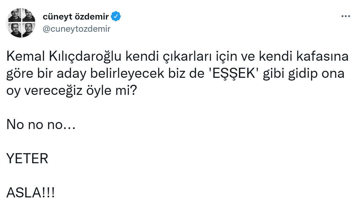 "Kemal Kılıçdaroğlu kendi çıkarları için ve kendi kafasına göre bir aday belirleyecek biz de 'EŞŞEK' gibi gidip ona oy vereceğiz öyle mi?