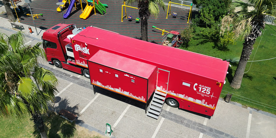 Doğal Afet Sigortaları Kurumu’nun yüksek teknolojik altyapı ile donattığı DASK Tırı, deprem afeti yaşanması halinde hızla ilgili bölgeye intikal edebilen mobil sigorta ofisi olarak sigortalılara afet yerinde destek verebiliyor. Aynı anda 7 çalışan ile hizmet veren DASK Tırı, uydu teknolojisine dayanan altyapısı sayesinde kesintisiz iletişim sağlayabiliyor. Ofis olarak hizmette olmadığı zamanlarda da Türkiye’yi dolaşarak deprem konusunda toplumsal farkındalığı yükseltmek ve Zorunlu Deprem Sigortası bilincini yaygınlaştırmak amacıyla çalışmalarına devam eden DASK Tırı, İzmir’in ardından Aydın, Muğla ve Antalya illerinde vatandaşlarla bir araya gelecek. DASK, proje ile Türkiye’nin dört bir yanını ziyaret etmeyi planlıyor.