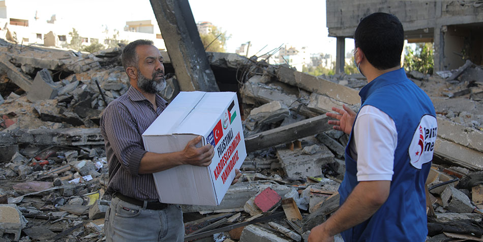 Dernek, Gazze’de iftar ve sahur için sıcak yemek yardımları yaparken aynı zamanda evlerini kaybetmiş Filistinliler için de çadır yardımlarına başladı. Ayrıca savaşın bıraktığı kötü ortamda bulaşıcı hastalıklardan korunmak için hijyen setleri bölgeye ulaştırılıyor. Bu yardımların yanı sıra hayatın devam ettiği bölgelerde alış-veriş için zekat ve fidye olarak nakdi yardımlar yapılıyor.