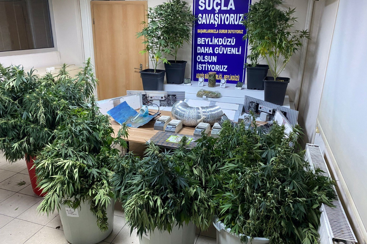 Uyuşturucu üretim serası olarak kullanılan villaya gerçekleştirilen operasyonda, 27 kilo 50 gram marihuana, 1 kilo 60 gram esrar, bir cep telefonu ve telefona ait iki sim kart ele geçirildi. Villa içerisinde gözaltına alınan E.K. (27) isimli şahıs ise sevk edildiği mahkemece tutuklanarak cezaevine gönderildi.