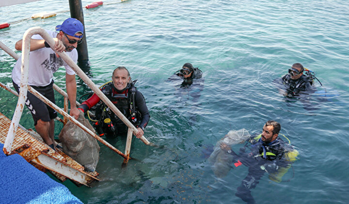 Dalış izlenimlerini anlatan Alemdar, "Koronavirüs sürecinde gündelik hayatımıza giren maske ve eldivenler son günlerde su altında karşımıza çok çıkmaya başladı. Biz sık sık su altında temizlik çalışması yapıyoruz. Uzun süredir sürekli karşılaştığımız ve her fırsatta topladığımız maskeler, deniz tabanına çökerek su altı habitatına zarar veriyor.